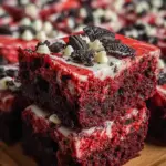 Cookies & Cream Red Velvet Brownies combine the rich, chewy texture of red velvet with crunchy Oreos and creamy white chocolate chips—an irresistible dessert!