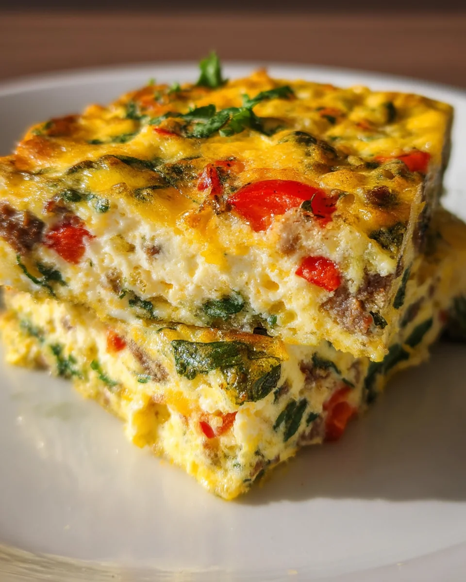 A hearty egg bake loaded with cottage cheese, vegetables, and melted cheese. High in protein and perfect for meal prep or feeding a crowd.